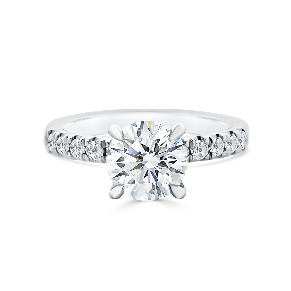 4 Claw Round Brilliant Cut Lab Grown Solitaire Ring With Claw Set Shoulder Diamonds