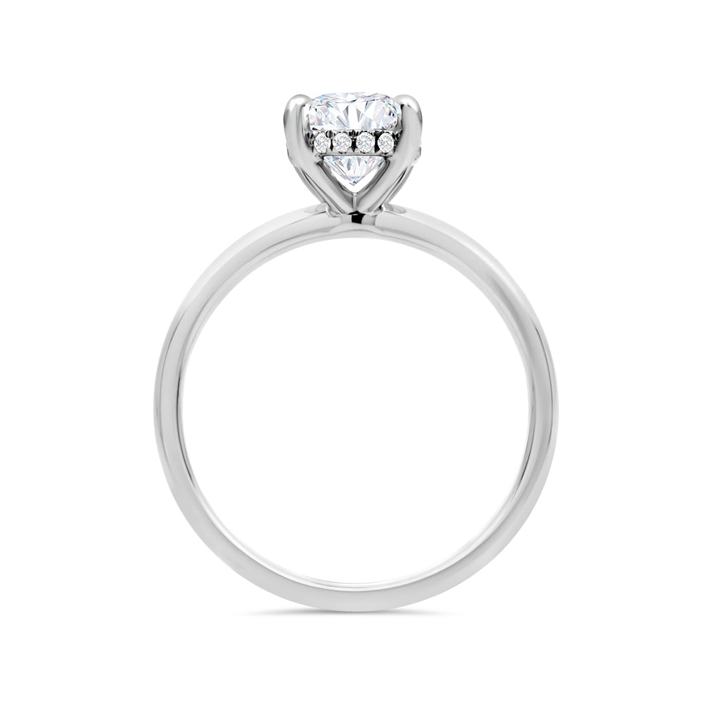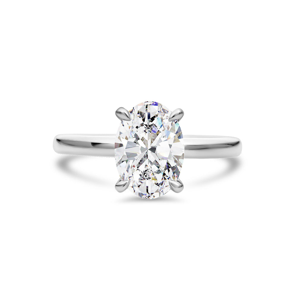 White Gold Oval Cut Lab Grown Diamond Solitaire With Hidden Halo