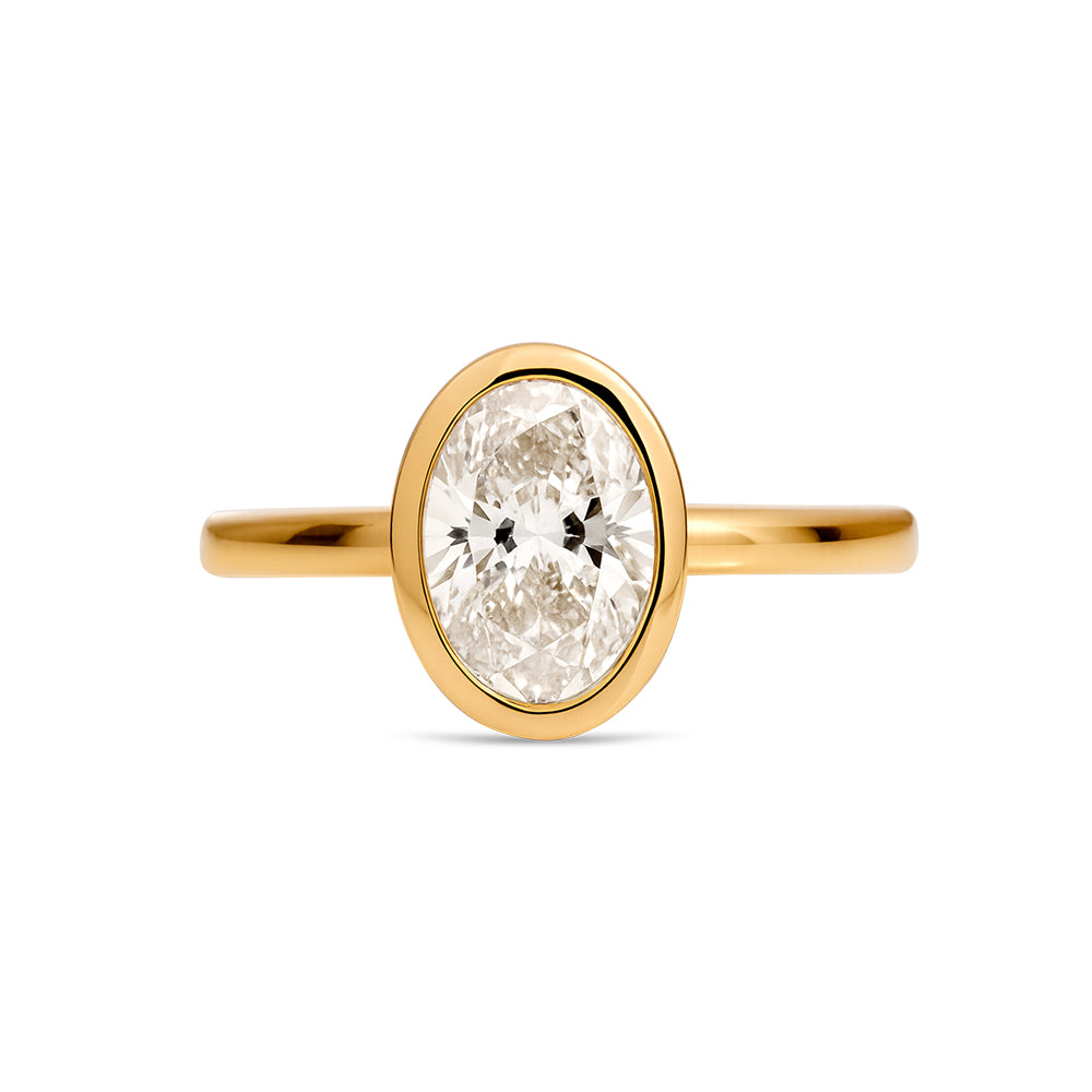 Lab Grown Bezel Set Oval Solitaire Ring 1.5ct - Yellow Gold