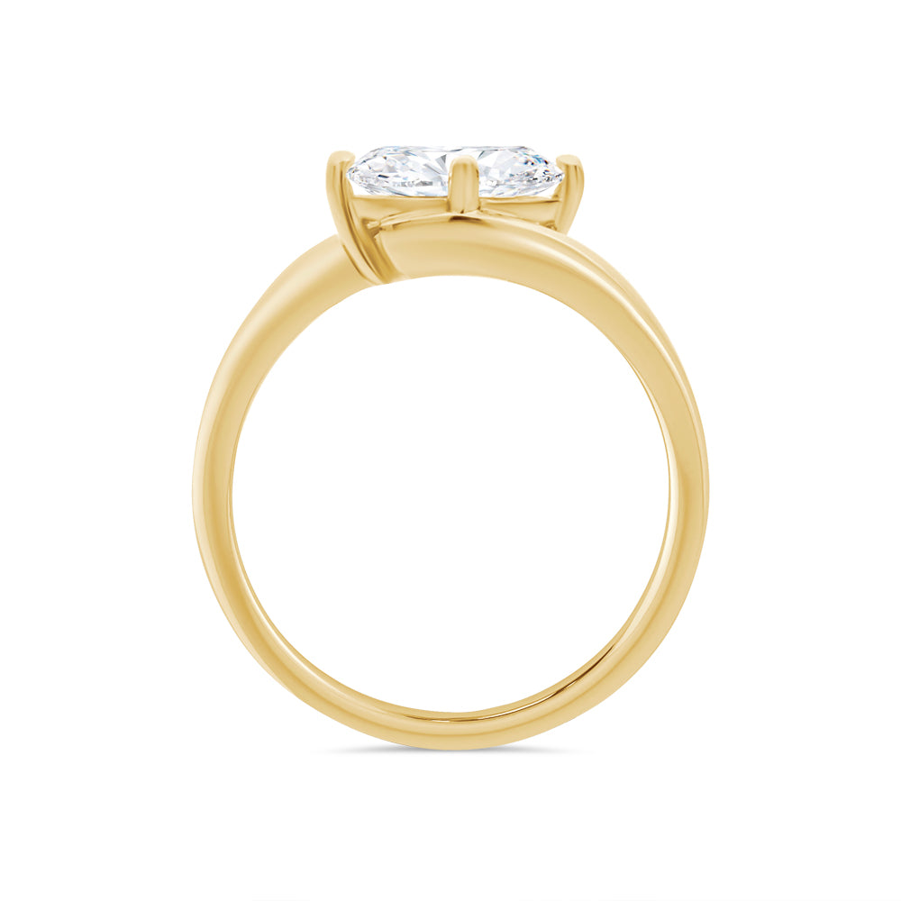 This ring is made from 18ct yellow gold. It features a 1.5ct oval cut LAB GROWN diamond in a four-claw setting, set east to west. The look of this ring is finished off with a fine, rounded, twisted band.