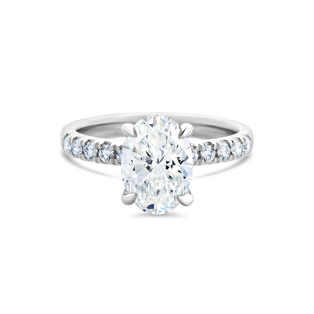 Oval Cut Lab Grown Diamond Solitaire Ring with Shoulder Diamonds 2.25ct TDW