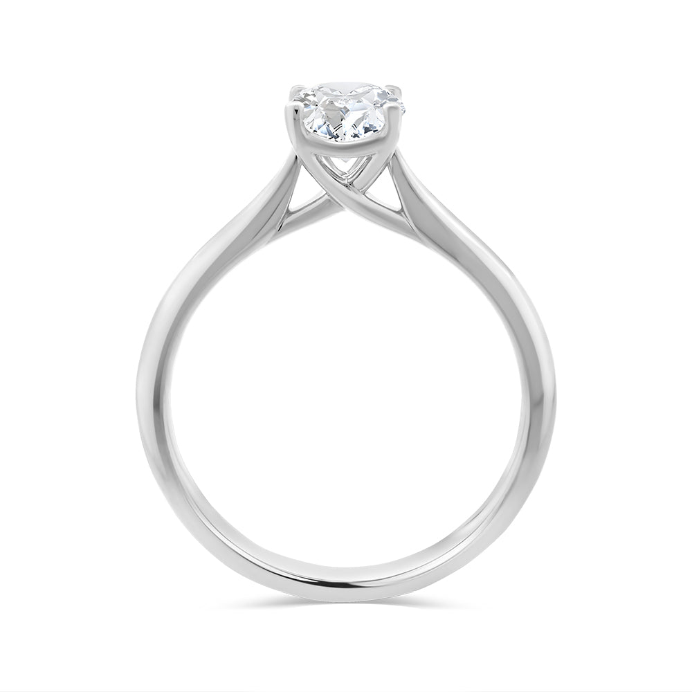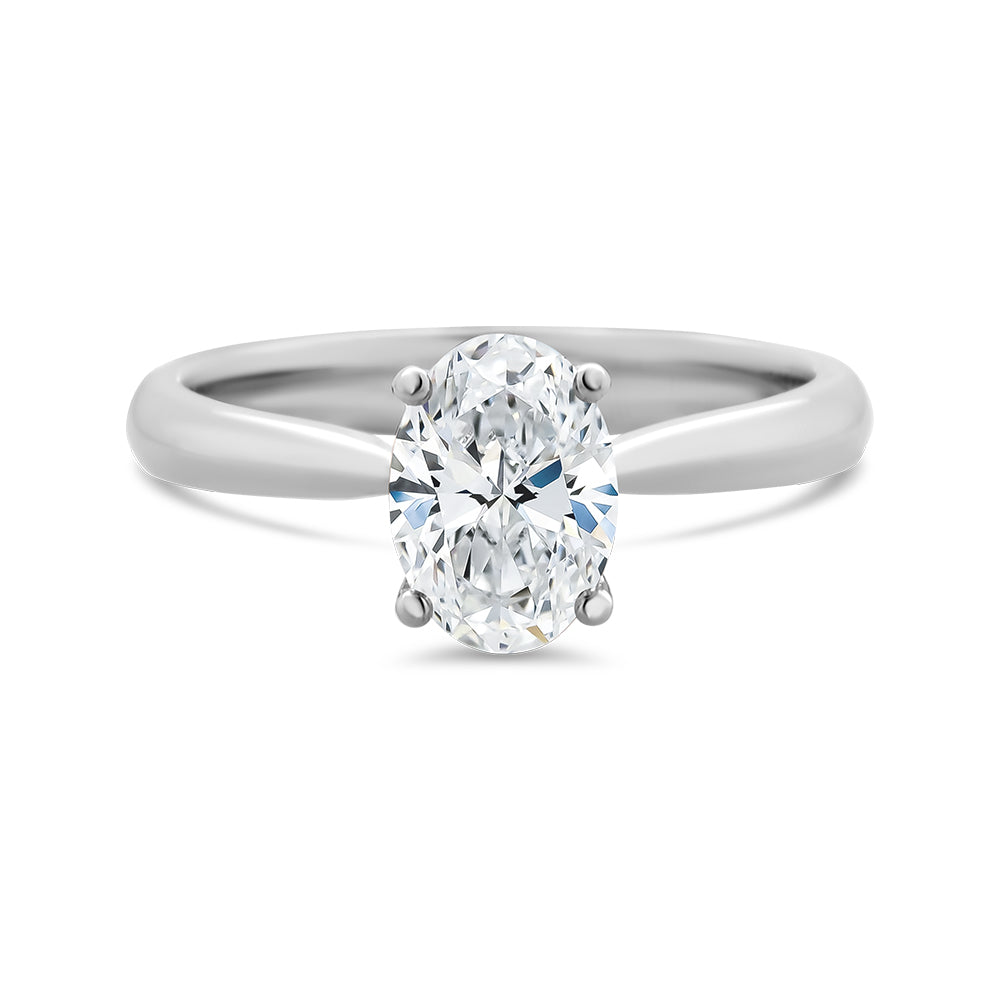 This ring is made from 18ct white gold. It features a 1ct oval cut diamond in a white gold, four talon claw setting. The look of this ring is finished off with a white gold band.