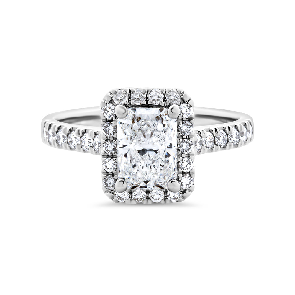 Radiant Cut Halo Lab Grown Diamond Ring with Shoulder Diamonds