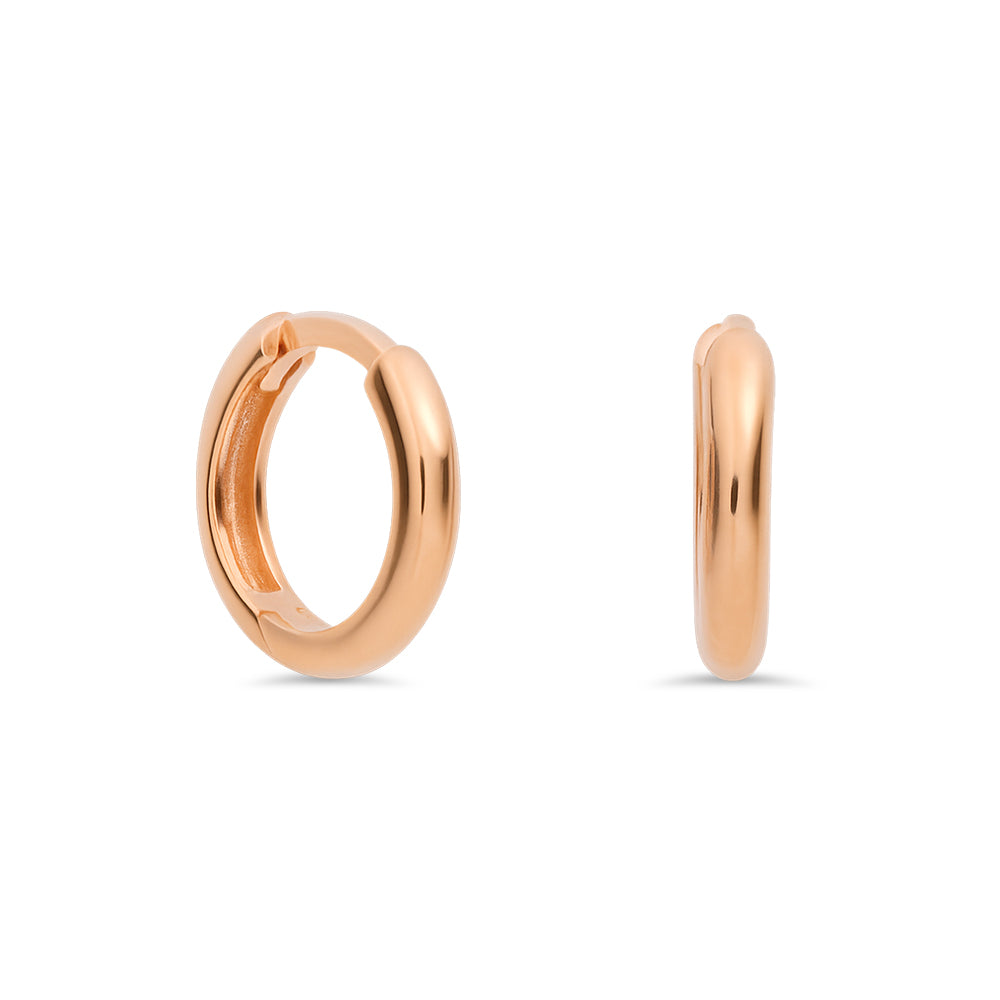These mini huggies are made from 9ct rose gold. Each one features a rounded wire and measures approximately 11mm in diameter.