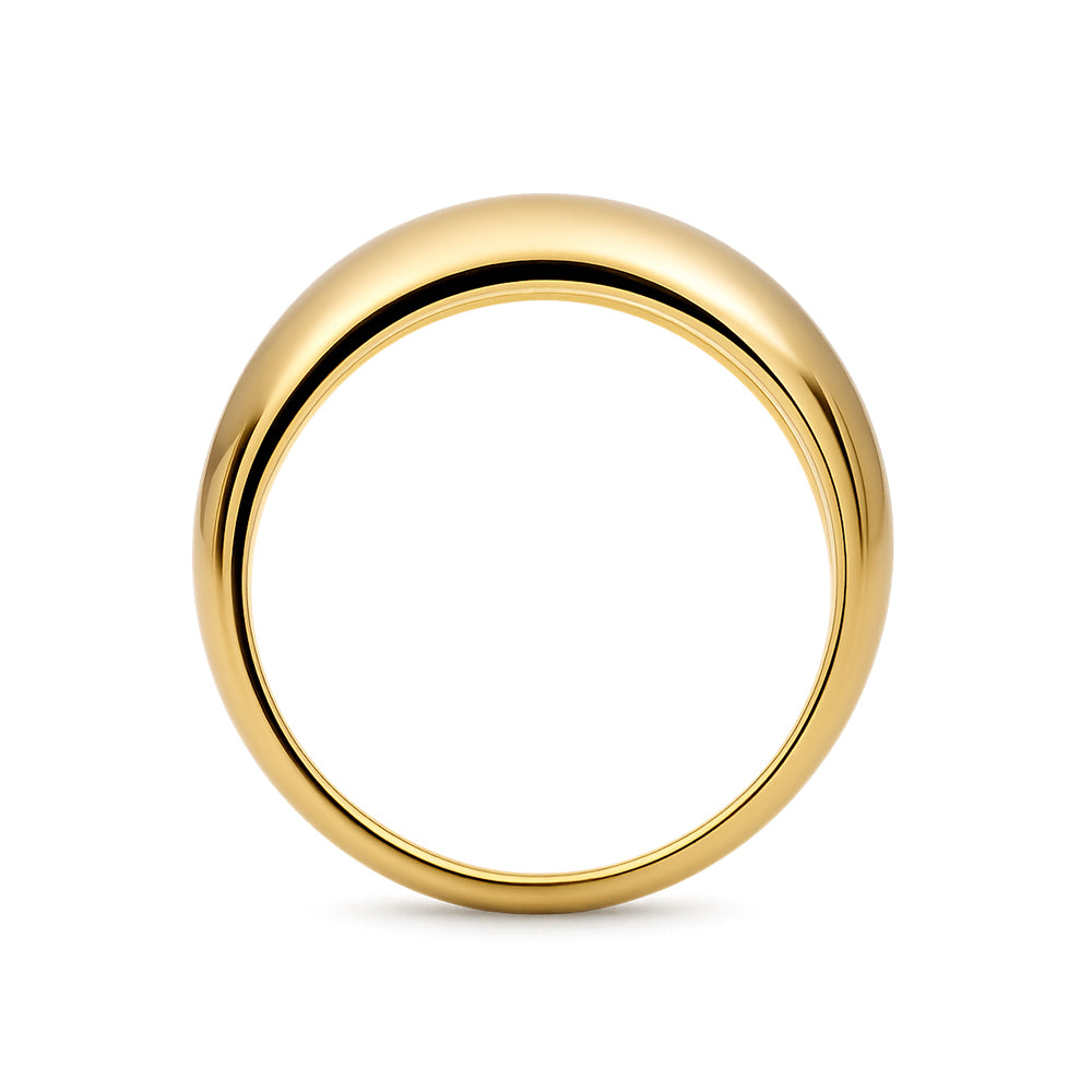 This ring is made from 9ct yellow gold. It features a domed design that is 6mm high and tapers to 2.5mm at the back of the ring.