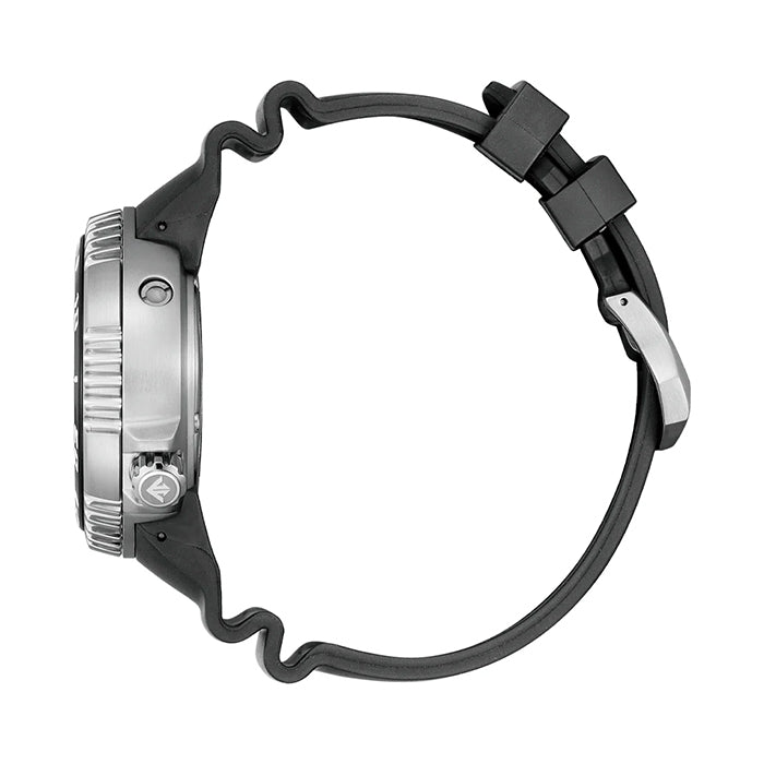 Inspired by the BN0150-10E, This watch features a dial inspired by the dark hues of the deep sea. The grey dial transitions to black towards the 6o'clock marker. The dial also features silver toned features that are filled with luminescence as well as a date window, all protected by 4mm thick, anti-reflective sapphire crystal glass. The 46mm, stainless-steel case of the watch features a stainless-steel unidirectional rotating, 120 click dive bezel with a recessed minute track while the outside of the bezel features a serrated edge for easy use. The 16mm thick case of this watch also features a helium release valve and a diver engraved onto the case back. The look of this watch is finished off with a black hydolysis-resisant BENEBIOL band.