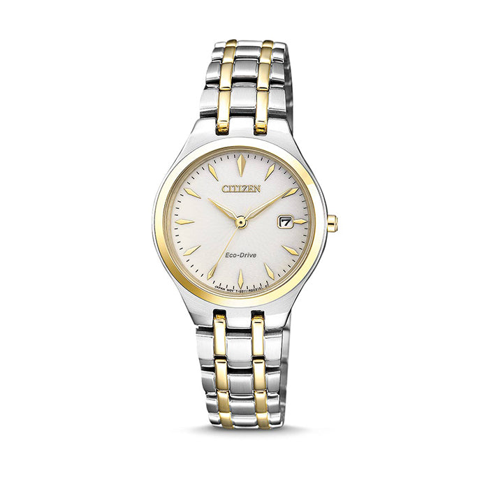 Style meets substance in this gorgeous watch from the dress collection. With the combination of gold and silver tones on the band, and the accentuated gold bezel framing a beautifully fresh white dial with gold markings, it creates a lasting impression suitable for any occasion.