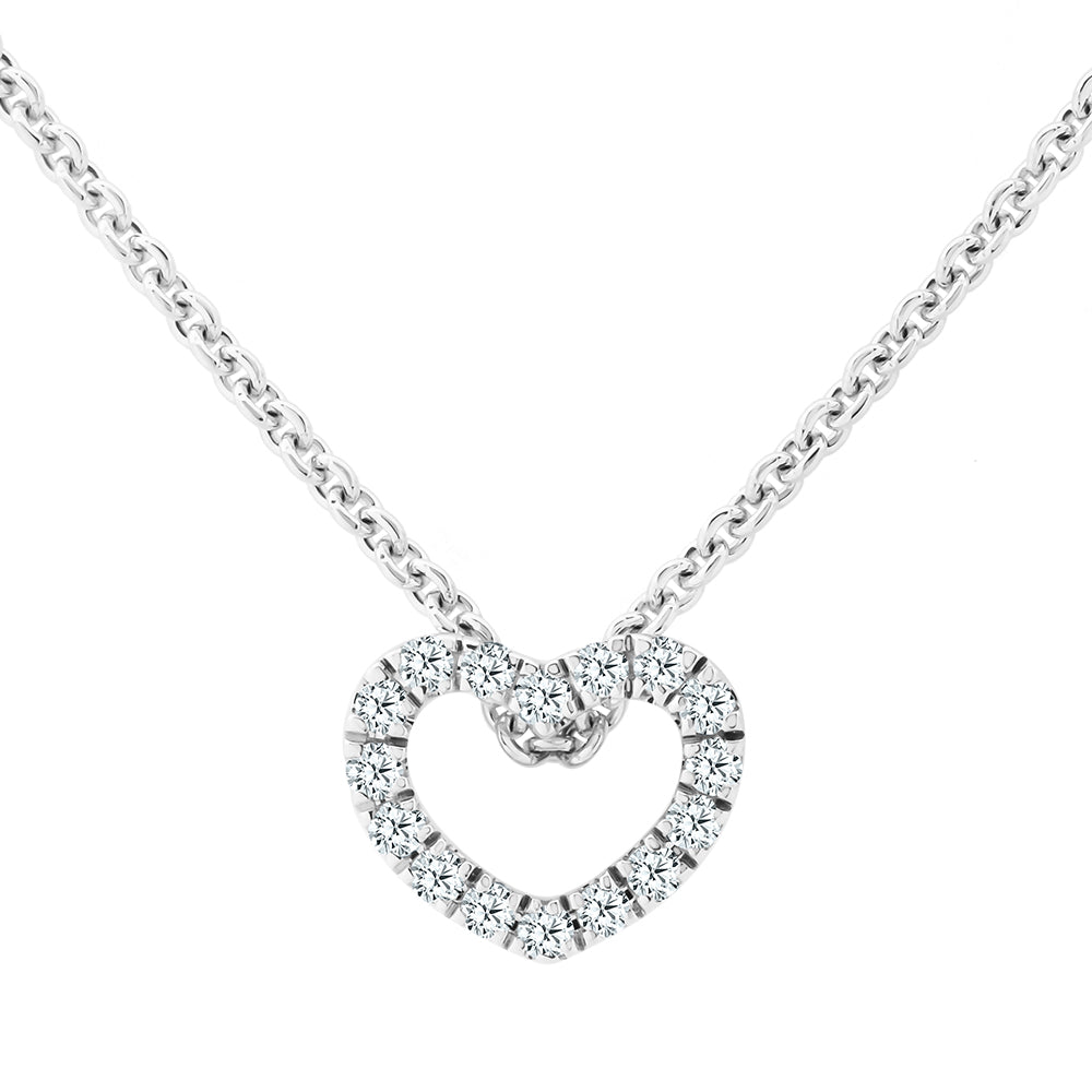 Claw Set Diamond Heart Pendant Necklace With 9ct White Gold Chain