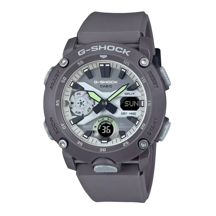 CARBON CORE: These new models offer an attractively thin configuration. They inherit the octagon form that was employed for the original DW-5000C. Analog-digital timekeeping comes backed into a no-nonsense simple design without sacrificing G-SHOCK level toughness. High strength resin material which is reinforced with carbon fibre.