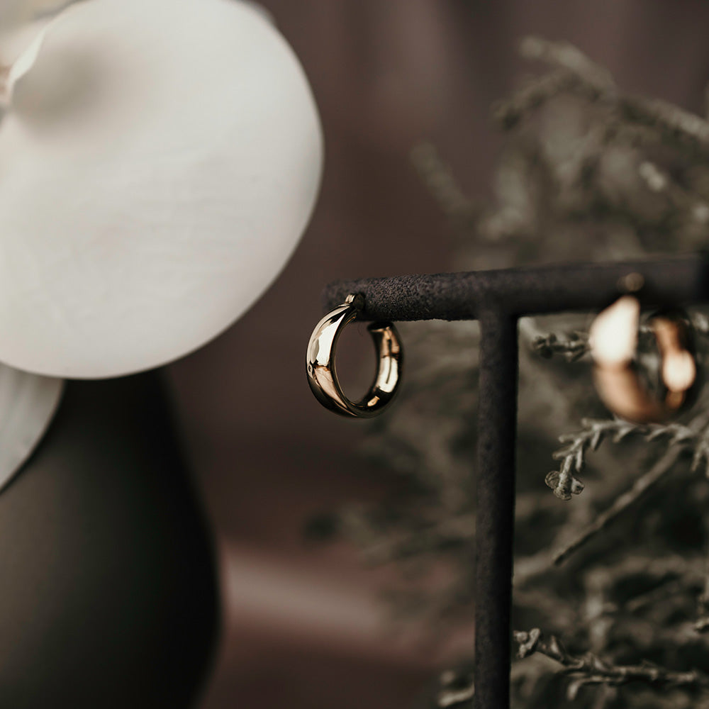 These round huggie earrings are 10mm in diameter and an essential for any outfit!