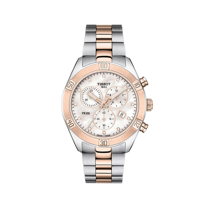PR 100 SPORT CHIC: The Tissot PR 100 is a classic watch destined to be worn often and for every occasion. It features the simple and elegant face the collection is loved for, with the pared-back aesthetic symbolising luxury, quality and classic style. These watches bring together sporty and feminine details in a collection that is bold, stylish and ideal for the modern woman today.